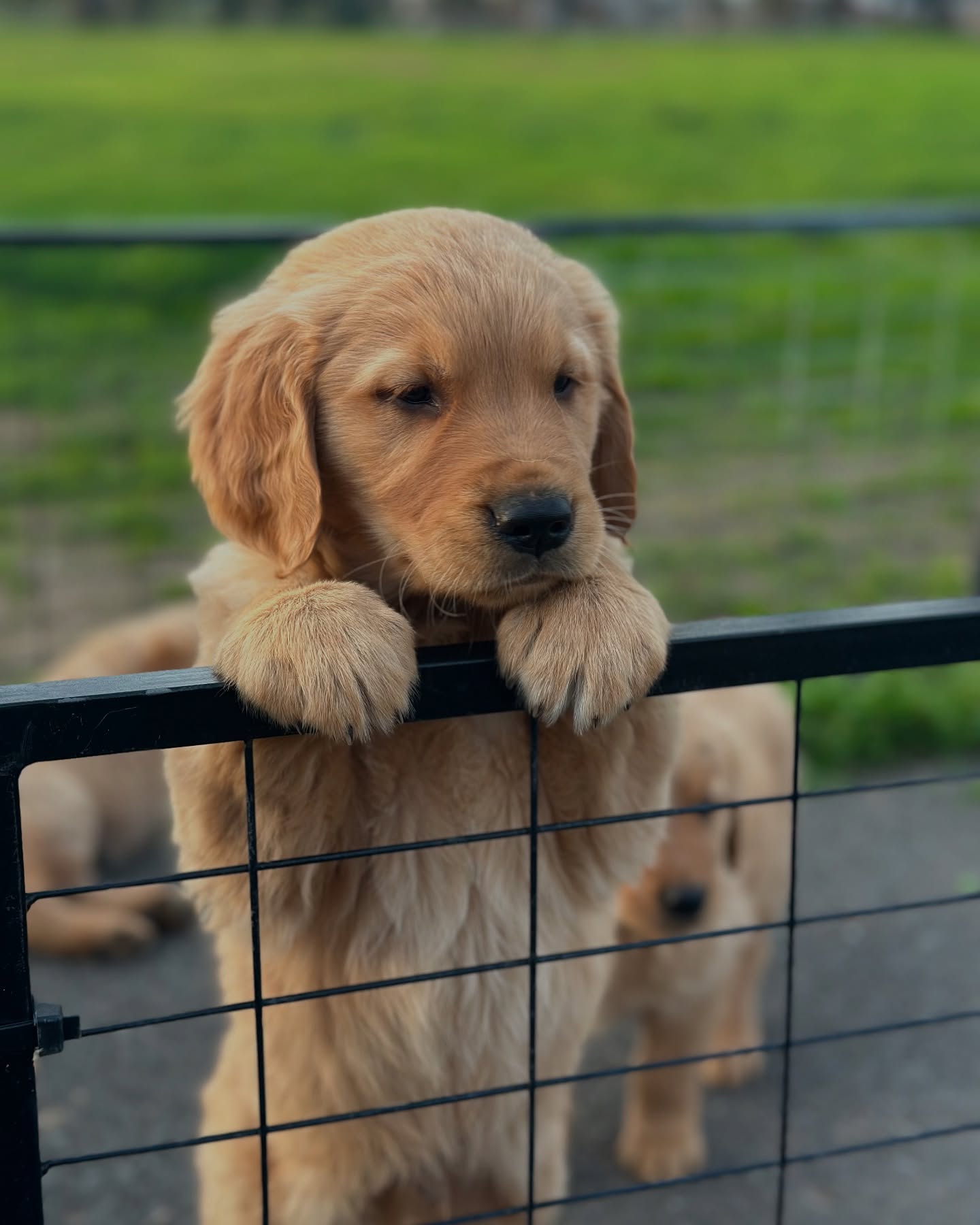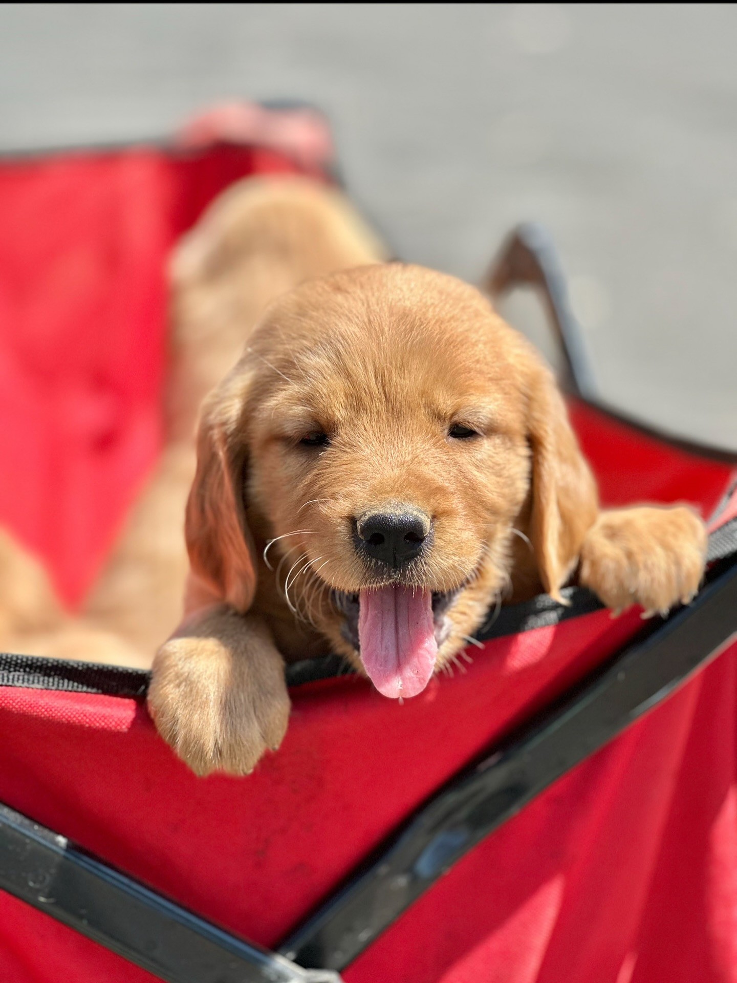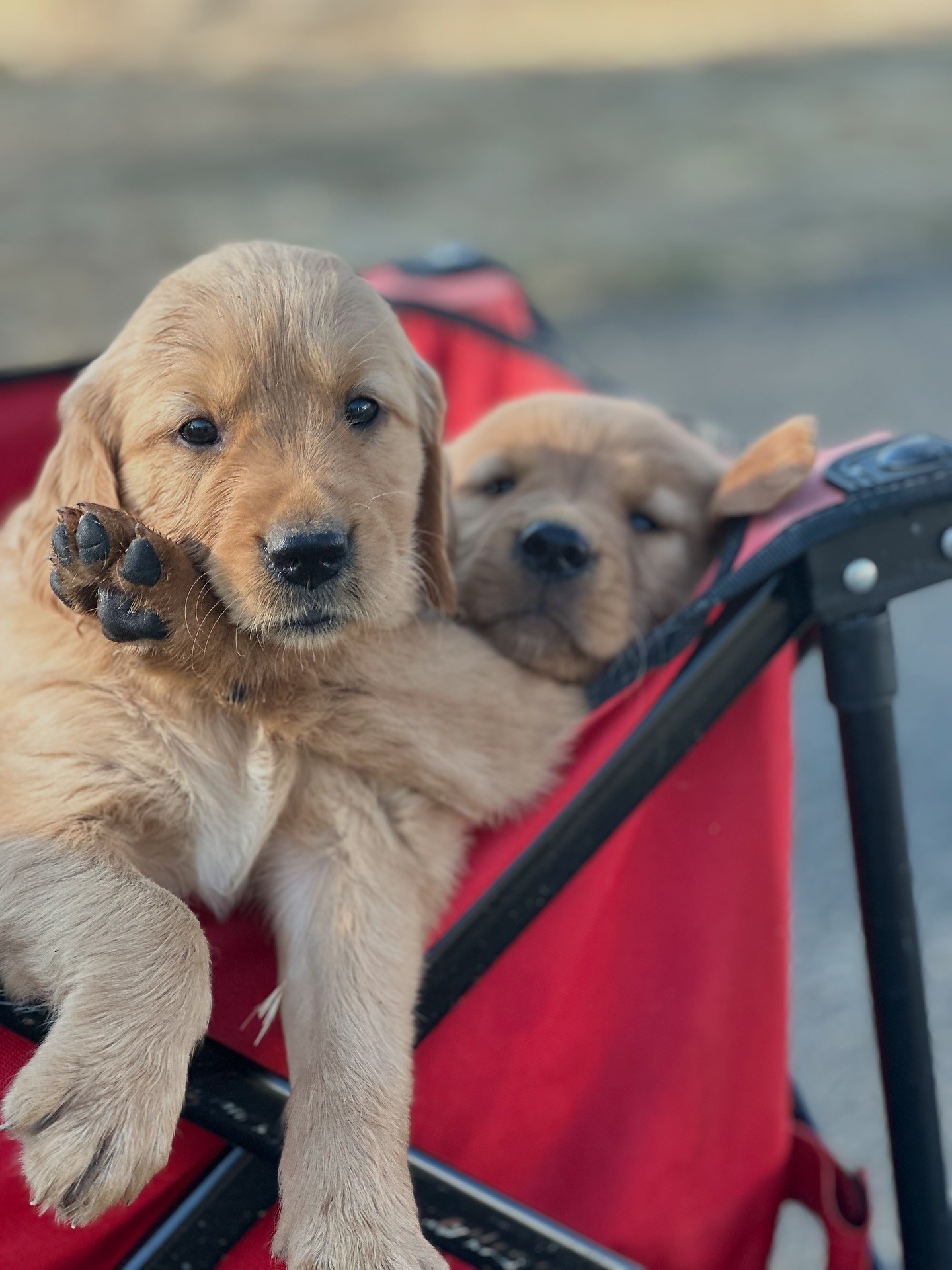 Our Golden Retriever mom is sweet, calm, and incredibly intelligent. She is health tested and raised in a loving home environment, and her gentle nature shines through in every litter.